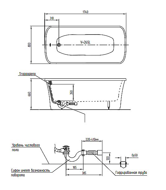 Ванна Migliore Olivia Panello 24253 174х83 белая,хром