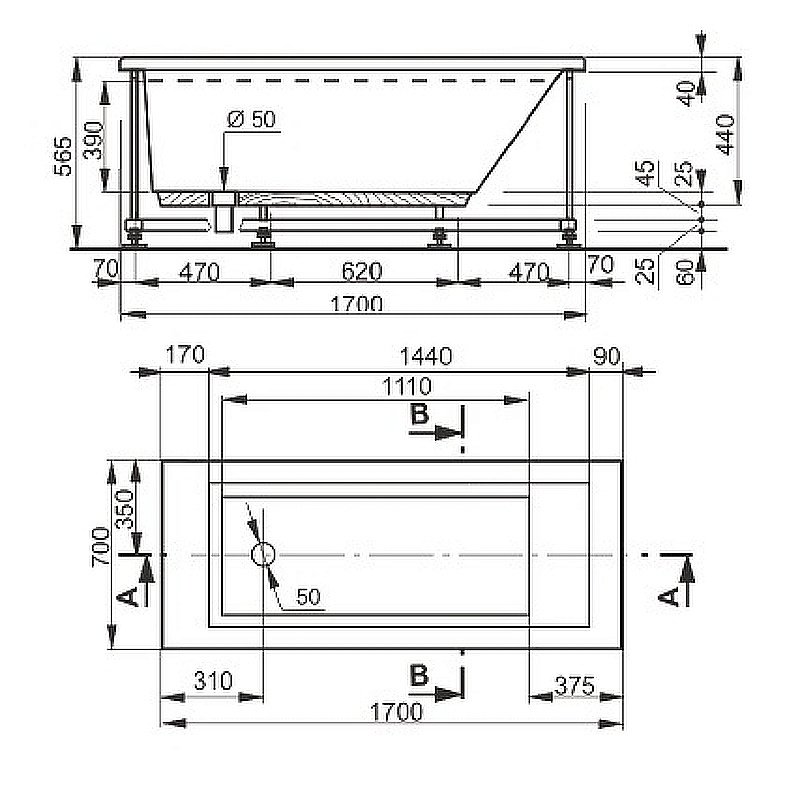 Фронтальная панель для ванны Pestan 170 137000170 белая