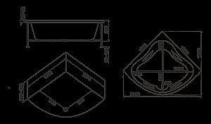 • Глубина ванны по центру: 520 мм