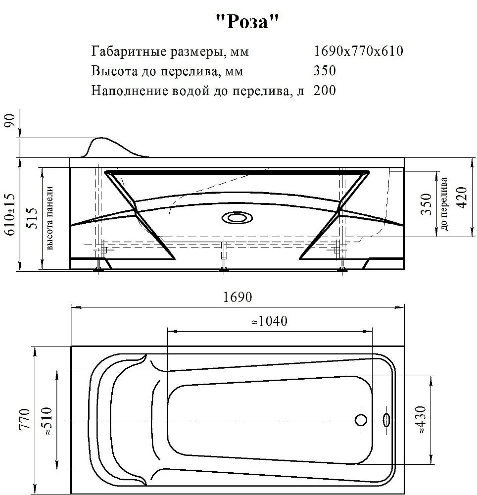 - Комплектация: Чаша ванны, каркас.