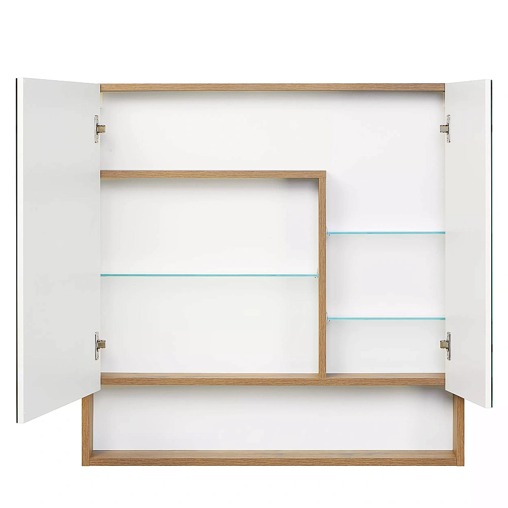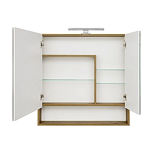 Внутреннее пространство зеркального шкафа разделено на ассиметричные секции, которые позволят хранить косметические средства различного объема и высоты.