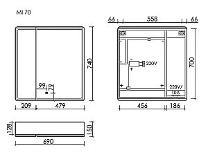 Зеркальный шкаф Sancos Mirror MI70EG дуб галифакс натуральный