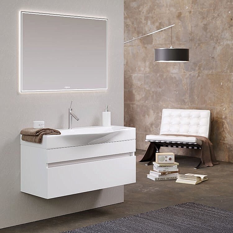 Данная модель оснащена встроенной светодиодной подсветкой, сенсорным выключателем, а так же регулятором освещенности, что способствует еще более комфортному использованию зеркала и  делает его стильным элементом современого интерьера, выполненного в минималистичном дизайне.