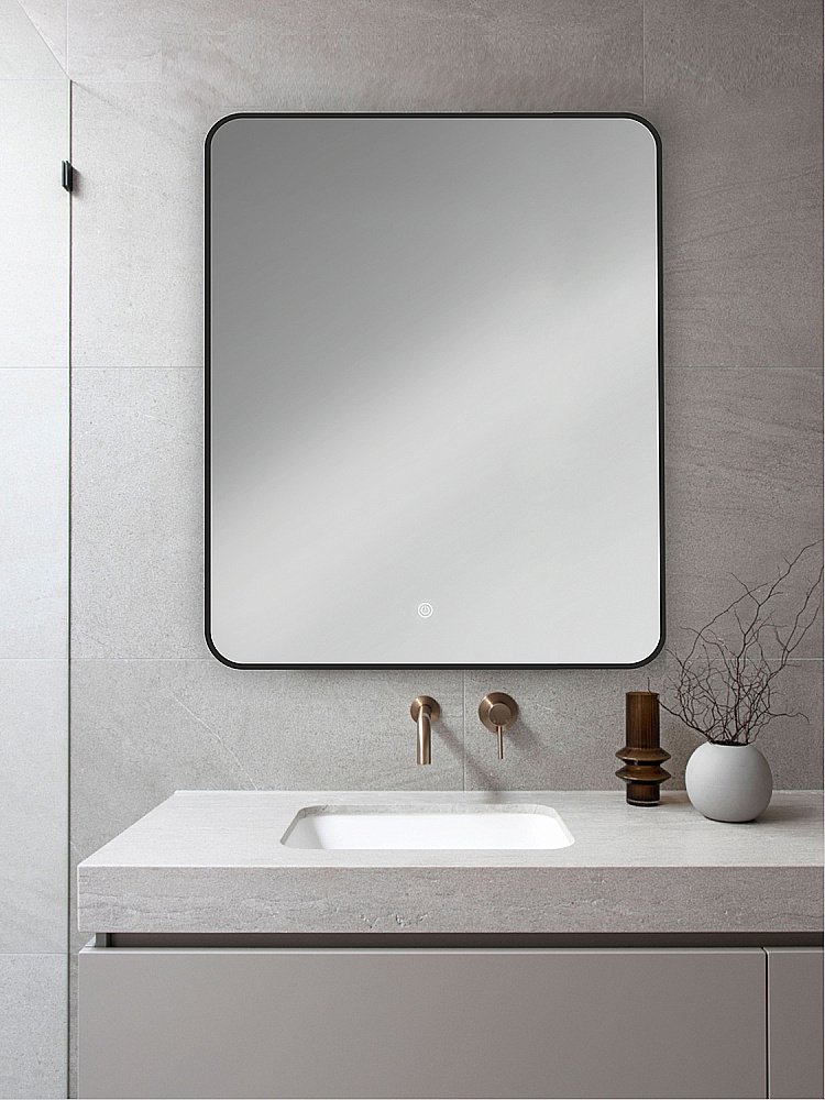 Зеркало с LED подсветкой с чёрной окантовкой и сенсорной кнопкой бренда Orange прекрасно дополнит интерьер вашей ванной комнаты. Зеркальное полотно премиального качества производства AGC. Усиленная LED-подсветка (36W) по периметру обеспечивает отличное рассеянное освещение и отсутствие теней. Включение происходит за счет касания пальцем светящейся области сенсорного выключателя. Зеркало имеет пластиковый короб, что позволит надежно защитить  электронику от попадания влаги.