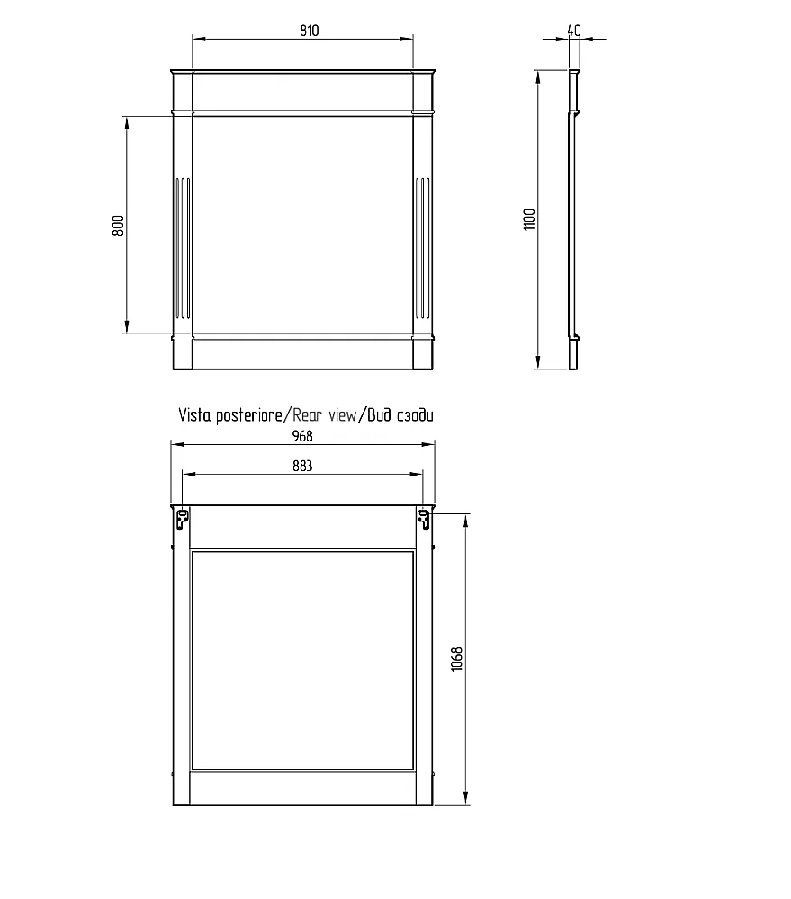 Рама зеркала изготовлена из массива бука и украшена классическим рисунком.