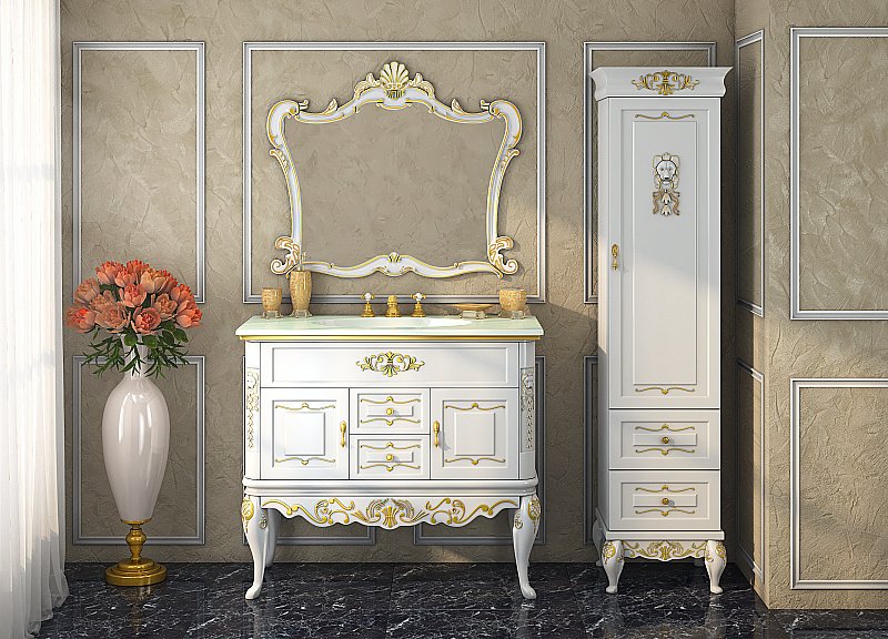 Зеркало Misty Bianco 100x90 белое сусальное золото