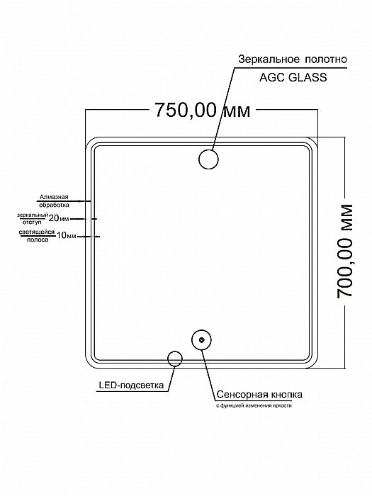 Зеркальное полотно премиального качества производства AGC. Пластиковый короб, что позволит надежно защитить электронику от попадания влаги.