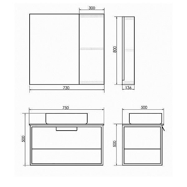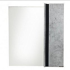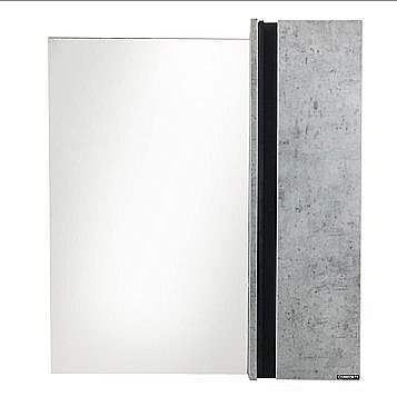Створка оснащена профильного вертикальной металлической ручкой окрашенной в матовый черный цвет. Петли с системой плавного закрывания. Высококачественное зеркальное полотно с амальгамой на основе серебра. Фасад и корпус из влагостойкого ЛДСП Бетон светлый. За створкой две горизонтальные полки.