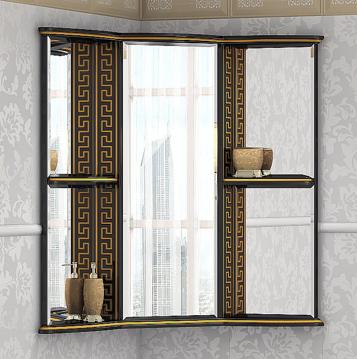 Зеркало со шкафом Misty Olimpia Lux 60 черное патина правая
