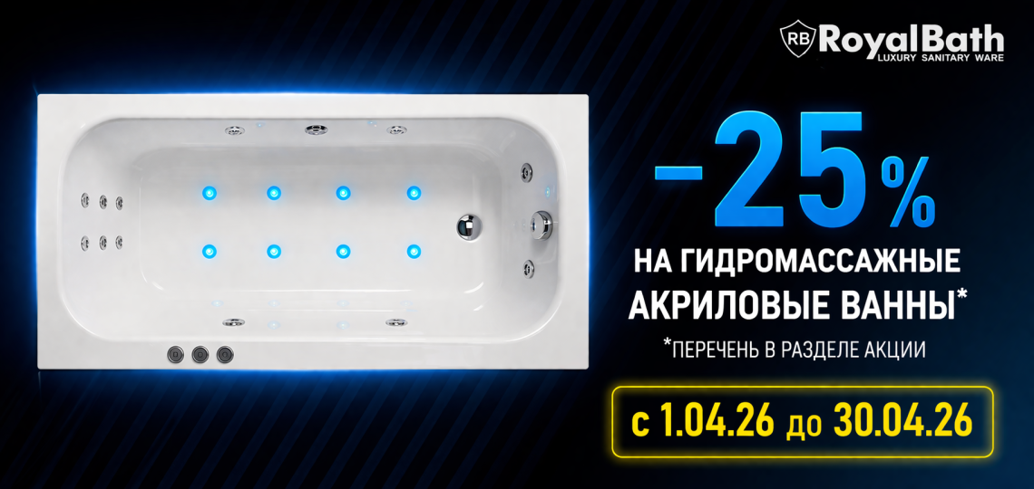 Гидромассажные акриловые ванны Royal Bath. Скидки до 25%